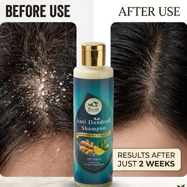 Herbal Anti-Dandruff Shampoo — A powerful blend of natural herbs that helps remove dandruff and control scalp flakiness. Infused with Neem, Tea Tree, and Aloe Vera to purify the scalp, reduce itchiness, and nourish hair from root to tip. Regular use keeps your hair clean, healthy, and refreshed with lasting softness and shine.