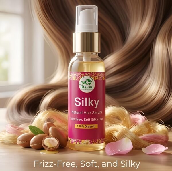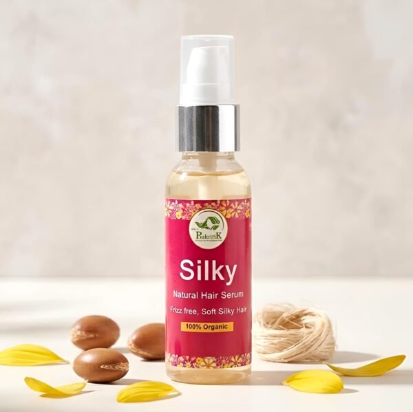 Transform your hair care routine with our Natural Hair Serum Silky, crafted with a potent blend of plant-based oils and botanical extracts designed to deeply nourish, repair, and protect your hair without any harsh chemicals or synthetic additives. Add a radiant shine without weighing your hair down.