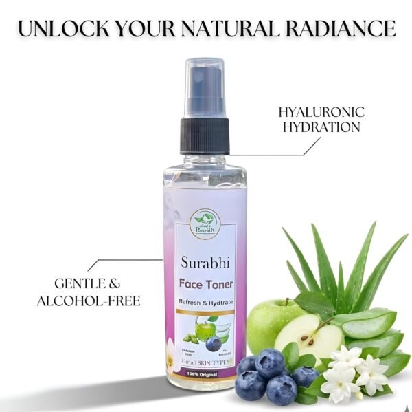 Refresh and restore your skin with our 100% Organic Face Mist SUROBHI! Crafted from a delicate blend of natural, fruit-based ingredients.This hydrating mist provides an instant boost of moisture while promoting a healthy, radiant complexion. Ideal for all skin types, it soothes, revitalizes, and balances your skin throughout the day without any harmful chemicals or artificial additives.